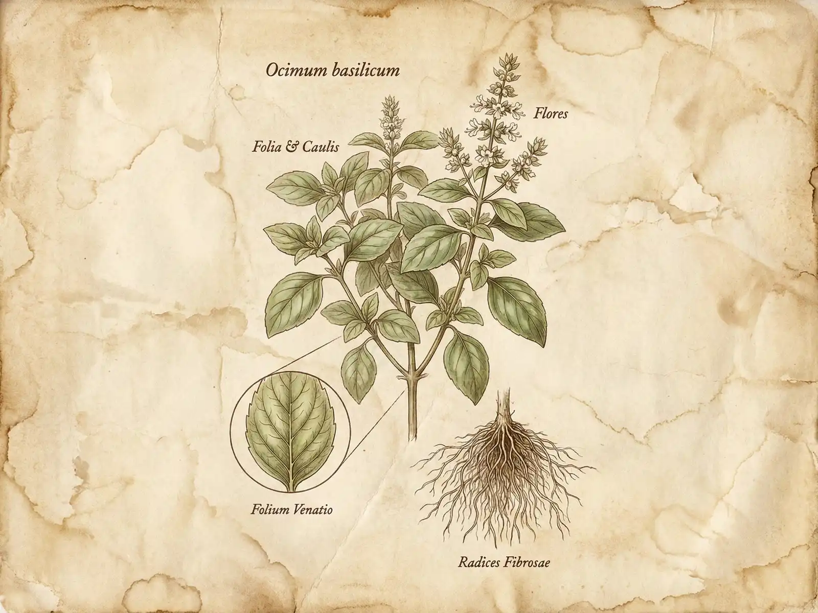 羅勒(Basil)的名字,源自希臘語「Basileus」,意為「國王」,足見其在古代備受尊崇的地位。在印度,它被視為聖草,用於保護身心;在歐洲,它被士兵們佩戴,以獲取勇氣和力量。它始終與清晰、力量、專注等陽性特質緊密相連,這份「王者之風」,也構成了它療癒能量的基石。