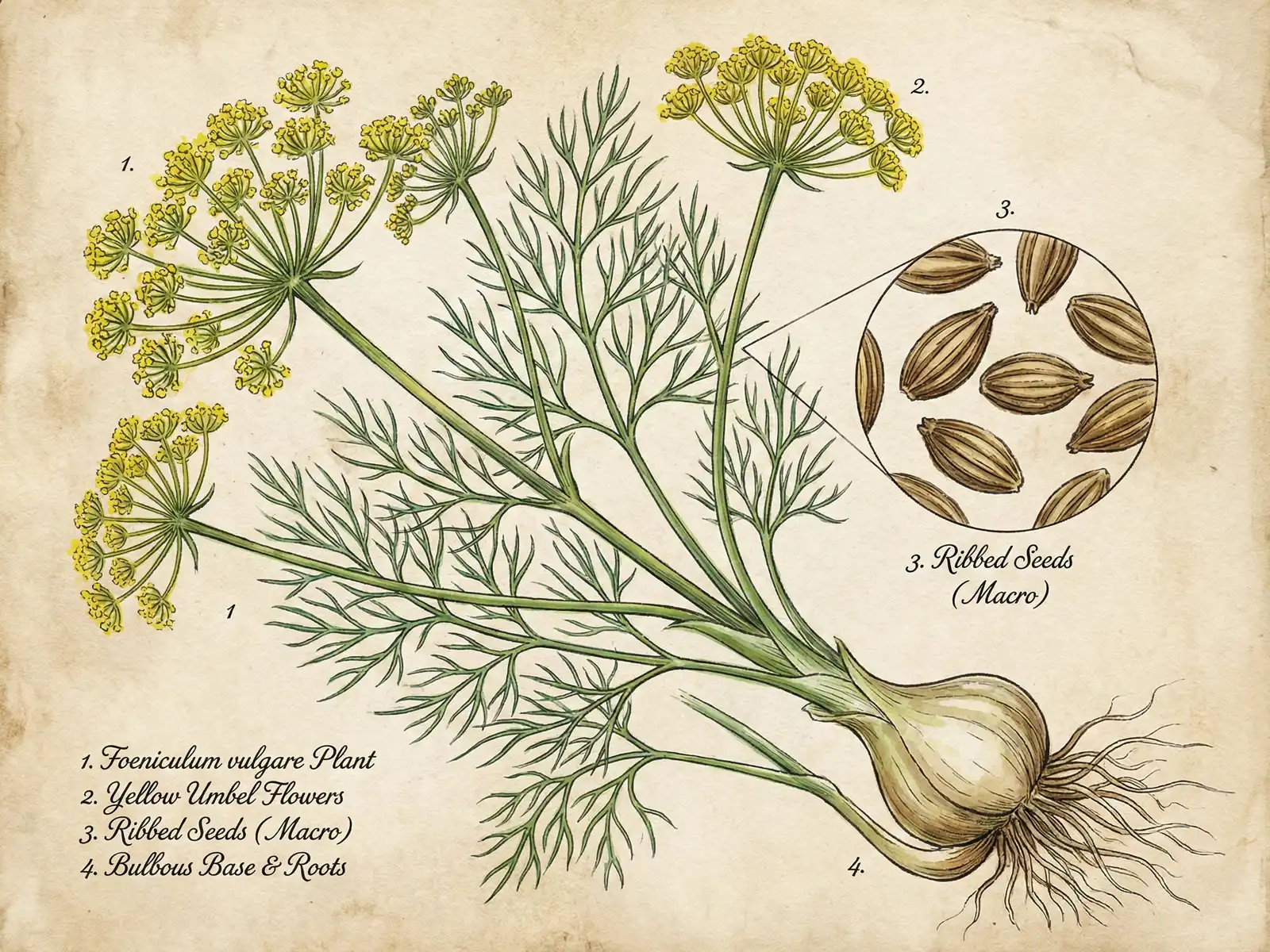 茴香(Fennel)的歷史,充滿了力量與光明。古羅馬的戰士們在戰前會食用茴香,相信它能賦予勇氣與力量;古希臘人則稱它為「Marathron」,意為「變瘦」,因其有助於身體代謝而得名。它還被認為能增強視力,象徵著看清事物的本質。這份「促進消化」與「帶來清晰」的特質,貫穿了它的古今。