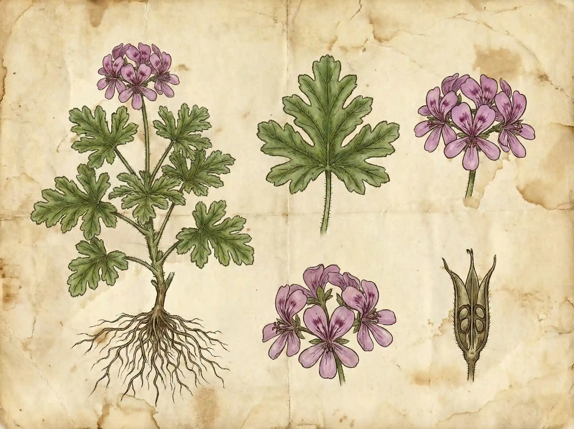 天竺葵(Geranium)並非真正的玫瑰,卻因其酷似玫瑰的甜美花香,而被譽為「平民的玫瑰」。在 19 世紀的維多利亞時代,它曾是歐洲最受歡迎的窗台植物。人們不僅用它來裝點家園,還會在指套大小的碗裡放上它的葉片,讓客人在餐後用它來清潔手指,享受它平衡、潔淨的香氣。這份與生俱來的「調和」特質,讓它成為了芳療中不可或缺的平衡大師。