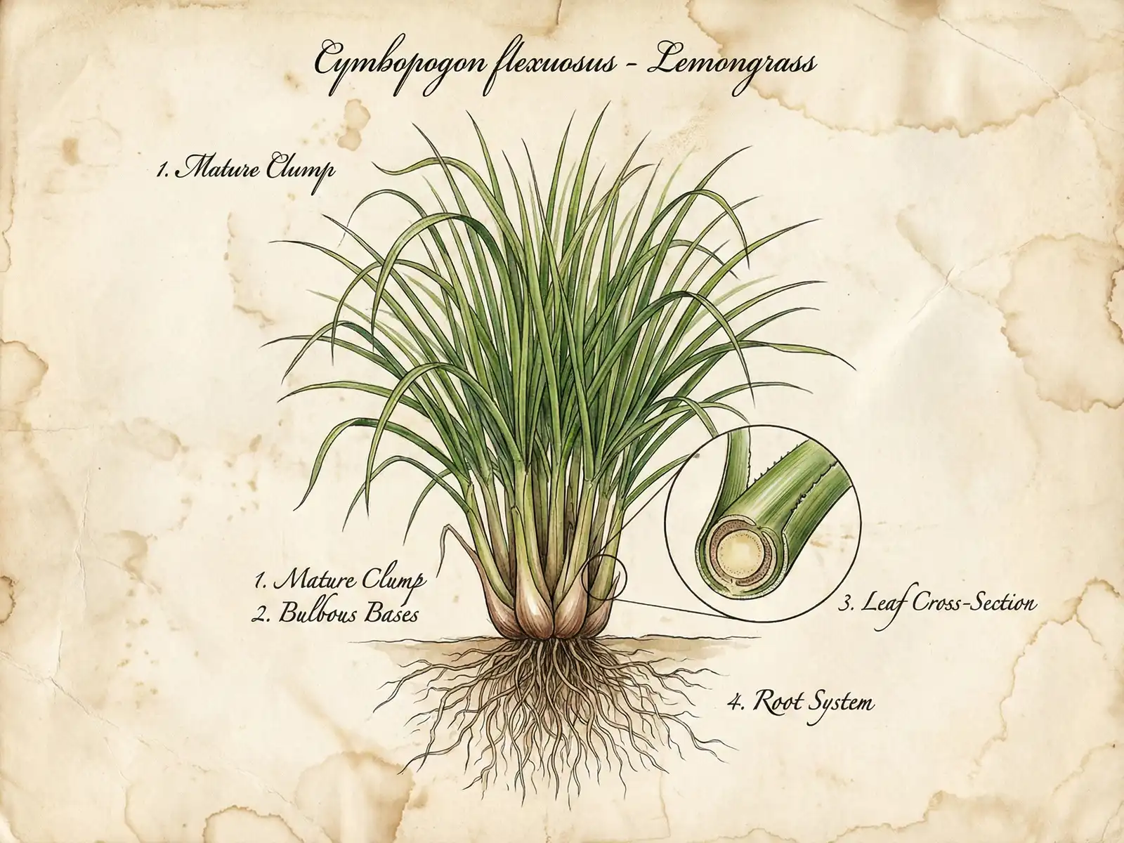 檸檬香茅(Lemongrass),又名檸檬草,是熱帶地區常見的植物之一,也是東南亞美食中不可或缺的靈魂香料。在傳統醫學中,它被廣泛用於退熱、緩解疼痛和驅趕蚊蟲。人們相信它那強烈的香氣能夠驅散邪氣和疾病。這份源於熱帶陽光的「強勁」、「淨化」與「推動」的特質,也成為了它療癒能量的核心。