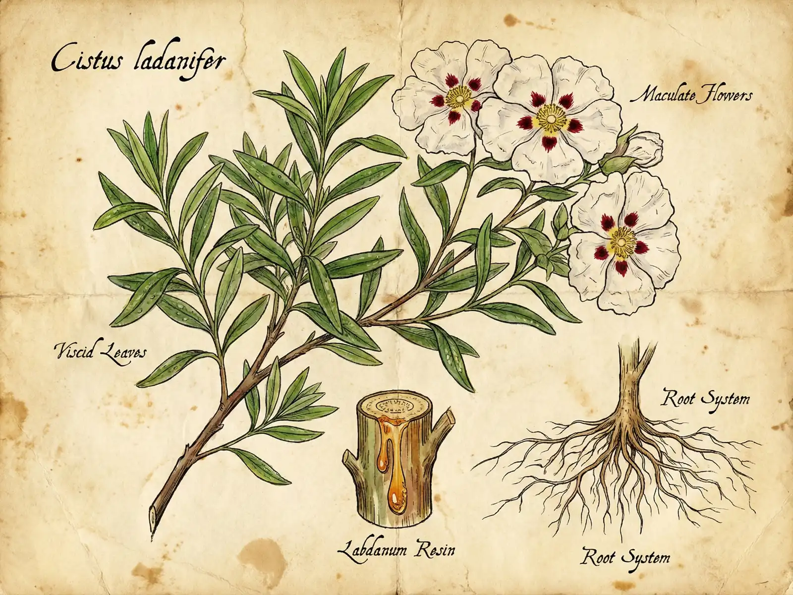 岩玫瑰(Cistus / Rock Rose),是一種生長在地中海貧瘠、乾旱的石灰岩土壤上的灌木。它有一種驚人的特性——它的種子需要在經歷一場森林大火的炙烤後,才能發芽、重生。這種「向死而生」的特質,賦予了它無與倫比的轉化與重生能量。它所分泌的樹脂,被稱為「勞丹脂」(Labdanum),自古以來就是珍貴的香料和藥物之一,被認為是「不死鳥」的血液。